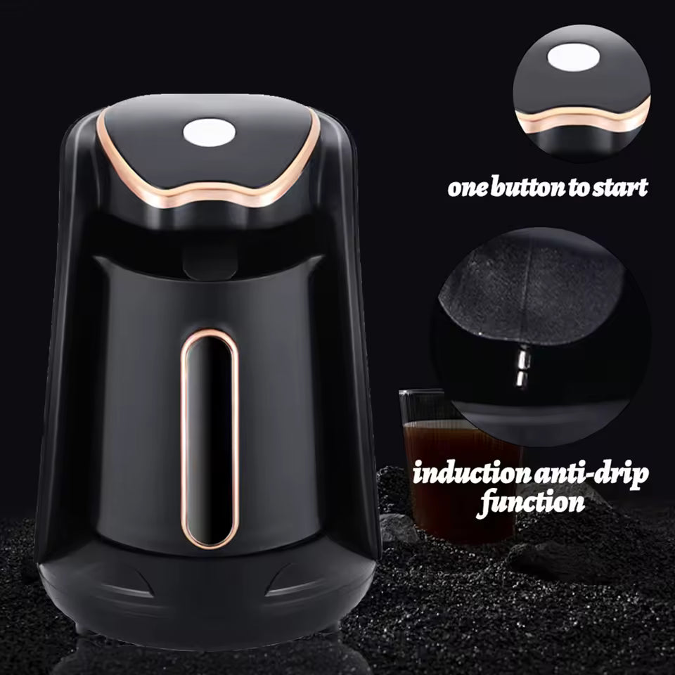 Experience the warmth of Arabic and Turkish coffee at home with our Electric Coffee Heater — a compact, elegant machine designed for effortless brewing.